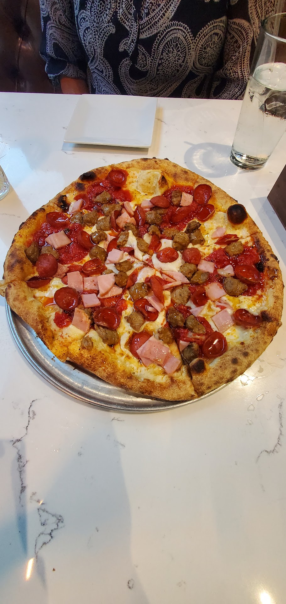 There was a wait of about 45 minutes upon arrival. First impressions: Beautiful building. Clean. Greeted quickly by a hostess. (Ridgeleigh*(unsure of spelling but she was great!). Got a seat at the bar to wait for our table. Bartender( didn’t catch her name) was very nice. Had their version of an Espresso martini. It was delicious and very strong! Husband had a beer. They have a large selection on tap.
