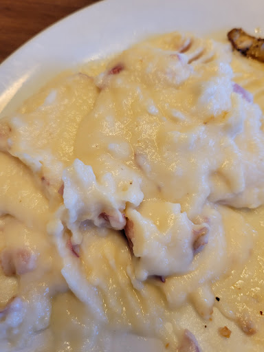 Our food finally arrives via someone not K. By this time water glasses are empty. K hadn't checked for refill and I was eyeballing my meal and didn't think about asking. Bad decision on my part, because K isn't the type to check on her tables.