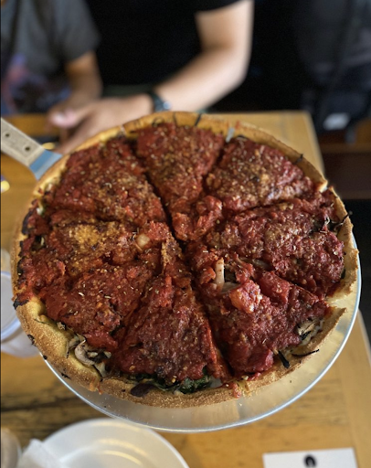 Their deep dish pizza was quite big. However, each slice wasn't as deep as I've had from other restaurants. The unique part was actually the corn meal crust. The bottom crust stayed crisp with lots of sauce on top of it. The tomato sauce was good. Good amount of topping items and good stringy cheese. We were all enjoyed the pizza so much! We put honey at the end crust and the combo was as good as eating a corn bread.