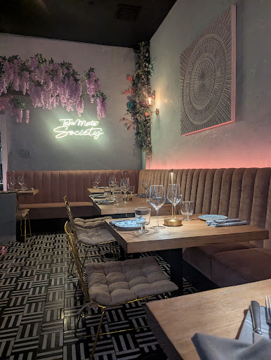 Review of a bday dinner. I’ll start with the good. Lovely atmosphere. Modern, clean, and nice lighting. Hookah room separated by door in diff section. The food was good and we enjoyed the flavors and styles. We ordered tea, tomato soup, pepper spread w pita, pesto chicken pizza, and Manti. Service was friendly.