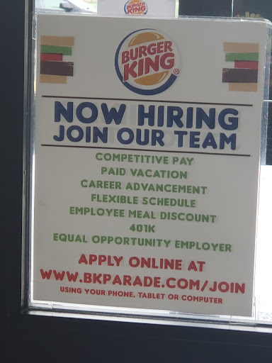 Read moreThis is the 3rd time we have stopped here on the way home. They say 3 times is a charm. Well our 3rd sealed BK's fate. The first time we went there a male employee was screaming at a female cashier to the point he put her in tears. The manager stood there and did nothing. Grant it our order was right. The second time a female employee the was talking to another employee about someone that workes there. The language was completely unacceptable. So unacceptable that I chimed in and explain that my 6 and 7 year old grand daughter were on the line, again the manager just looked at me and did nothing. Mind you our order was correct. This time our order was correct as always but also as always there was little to no choices for drinks. Everything wasout of stock. The dining room was filthy as always. Garbage cans were full every time we have been ther. A male employee in the back getting ready to take the trash out threw his coat up on the table where food is prepared. The cashier had a lint cover black sweater on filling french fries and onion rings orders. And yet again the manager is leaning on the counter doing nothing. Not to mention the Wait all three times was...