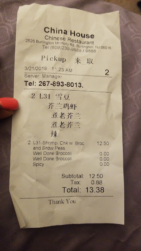 I just orded Shrimp egg foo young at 9:15 pick it and get home it has a straight piece of black hair in the bottom of my food!!!! I am DONE I rarely eat chinese food, but just want that taste on a Sunday night since I did not feel like cooking, but I am furious especially since I had read a reviewer who said they did too. But i have eaten here a few time, but this is Bad. The Burlingtin Health Department need to Inspect them about there Sanitary habits!!!! I called back and spoke to Dee (as she says that is her name) she tells me bring the food back and she will give me my money back. That was too easy as she know that has been a complaint before. Well i usually dont leave reviews, but I had too so as...