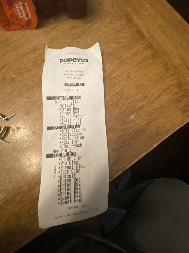 For a Popeyes that has been open for a year, they still haven't gotten their act together yet. I walk in and order 5 spicy trips only. 15 minutes later they tell me they are out of spicy, they have regular, but I can wait while they cooked the spicy. While I'm waiting another 15 minutes, I looked at the Popeyes app on my phone. It says I can add the points from my order using the number on the bottom of the receipt. The receipt in my hand doesn't have the correct amount of numbers to enter. Anyway my order is ready and it's completely wrong. They went back and got my spicy stripe which were ready for quite a while, because they were luke warm, and they only included 1 sauce. (With 5 straps you should get 2). After all that I asked about the"points" number on the receipt, the young lady said that their store was too new, and didn't participate with receipt numbers. Also, for a new store, the concrete floor was cracked and broken. Whatever contractor did those floors should be sued and be liable for repairs. I guess I should have just...