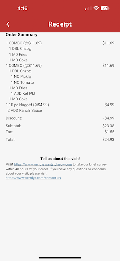 Read moreOkay so this location is a few minutes from my house and I have a 2 stories about it... 1. Staff is definitely unprofessional and unhappy with their job and it shows, I ordered a baconater with no mayo through delivery, when I unwrapped my burger I clearly can see drops of mayo still on the burger, opened the bun and could CLEARLY see the mayo was simply wiped off with something and covered with more ketchup... also the fries were not fresh at all despite going at peak lunch time. 2nd story was from tonight, as I waited 20 minutes in line (as I always do at this location despite only 2 cars being ahead of me) when I get to the front the employee I talked to and I had a very weird exchange that went like this
