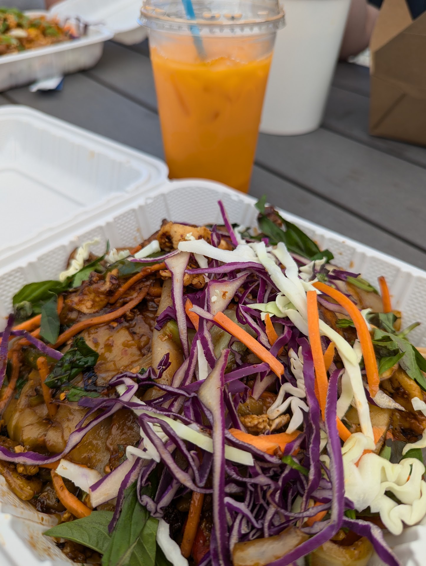 Read moreWe walked up to the take out window and ordered, the owner was super friendly and answered all of our questions. The food came out pretty dang quickly to the little seating area to the side as well, and we had everything there that we needed. The curry we got was 4/5 spice and didn't seem as hot as the 4/5 spiced noodles, so spice lovers should probably go for 5/5 is something is in a broth. Everything was hot and delicious, and the portions were really generous. We had lunch the next day too! The Thai iced tea and coffee were both really good too. The owner came out and chatted with us and was really friendly and nice, we'll definitely be coming back! Seems like a great place to call ahead and grab takeout on...