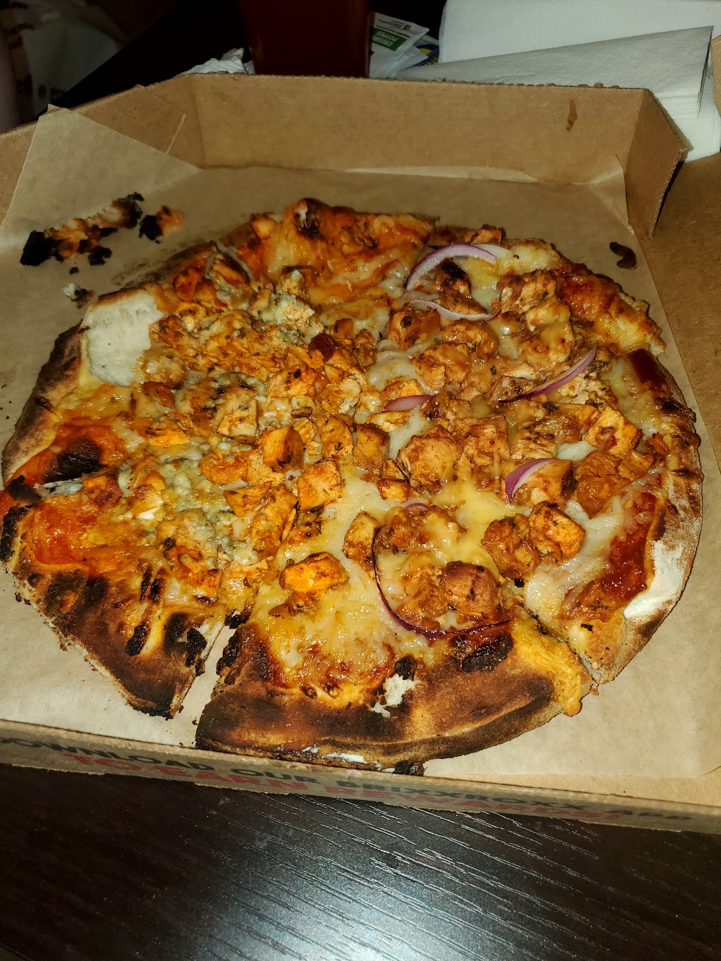 Ordered the BBQ chicken with my wife. It came out with nearly no sauce, no red onion and no cilantro. The server said "well that's our BBQ pizza." My wife asked just for some red onion to throw on top and call it good. The server never brought them. Then we noticed about 1/3 of the pizza was crust, as in an entire slice but 2" had no toppings. So we asked them to remake it, and you can tell the genius working in the back was obnoxiously over topping the pizza. It came out looking like soup. And it was still missing cilantro. Then, like 15 minutes after the first incorrect pizza came out, we finally got our (burnt) bruschetta appetizer. At this point, my wife just had enough with the attitude from the lazy staff and went to the car.