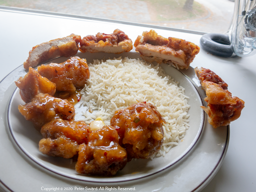 They are takeout only. General Gau's Chicken (8.25) from the lunch menu. "Cubes of chicken coated with water chestnut flour and eggs. Deep fried until crispy and cooked with hot sweet and sour ginger sauce". I also added on the B Jade Fried Chicken (1.75) from the apps menu. The fried chicken was excellent, tender, crispy and juicy. They are lined up on the outside of the plate. I do believe it was a chicken thigh and it was a big one. I'll get this again in a heartbeat. The GG's chicken was all dark meat (as it should be) with a very thin batter. Next time I'll ask for extra sauce and extra spicy. The chicken wings (2) on the appetizer lunch menu are two 2/3 pieces of a wing and they are really big and meaty. Both on the phone and picking up the people are very pleasant. However, ordering extra spicy just gets you a couple more unopened chilis. Extra sauce gives you the same amount of sauce, but just...