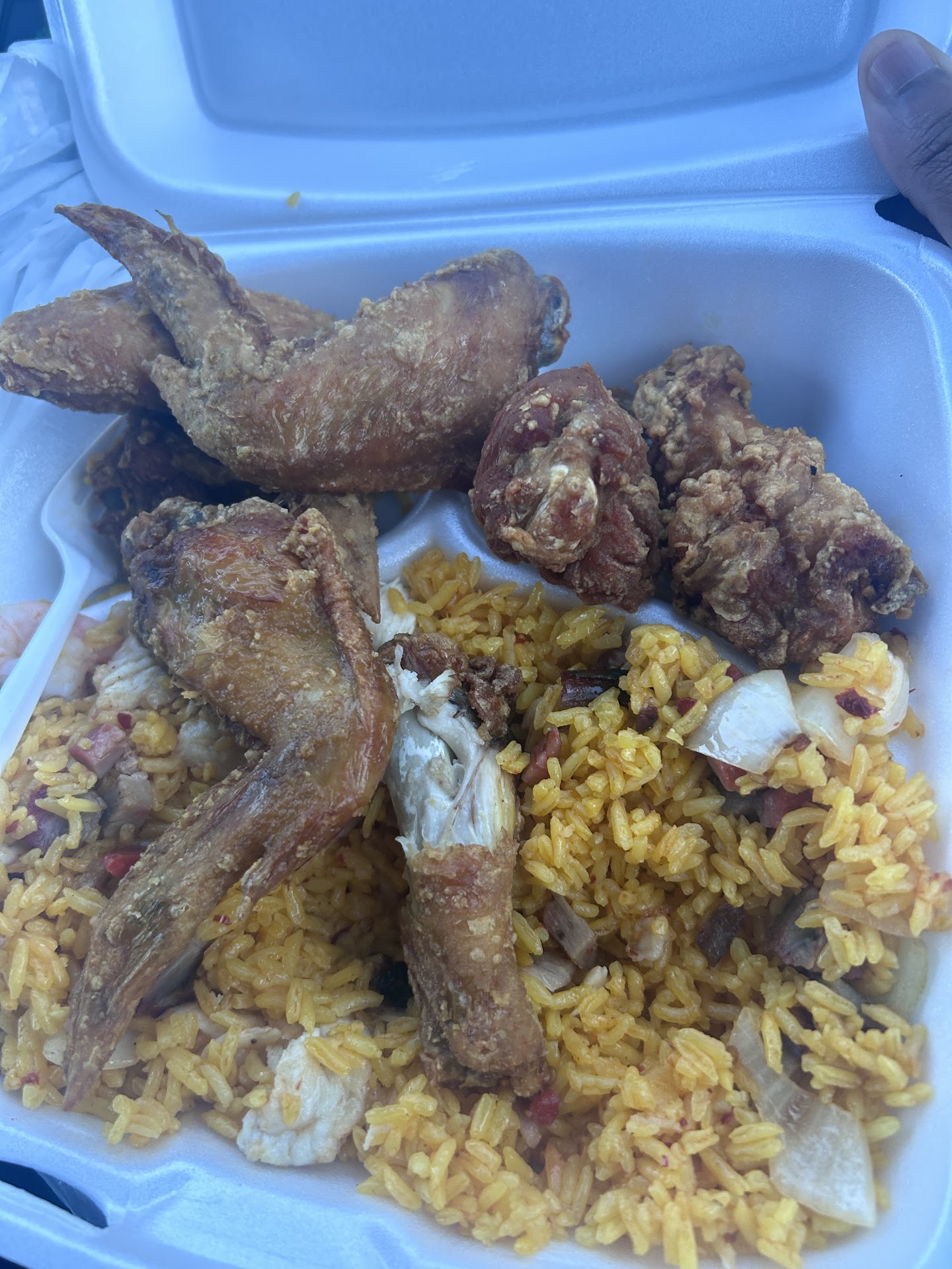 They don't even deserve 1 star the lady at the front is rude one cook was cutting up vegetables no gloves I paid $29 dollars and some change for half cook chicken in the house rice with chicken wings another order of 6 wings and 2 egg rolls ok I looked over the price and the cook with no gloves touching food, and the rude cashier that gets made and charges you for extra sauce but when I got home and started eating my food I noticed the chicken in my house rice was to undercooked for me to eat so I ate a wing and my egg rolls I started feeling sick 😷 like I was getting a cold my throat started feeling funny so I stopped eating and laid down the next day I was like let me hea3r up my chicken and re cook my rice well that's when I noticed a black object in the rice it was hard and crunchy it had been cooked into the rice I dig it out and I was hoping it wasn't true and I was also thankful that I didn't proceed to eat the rice well it was a fly I was disappointed and stressed out at this point so many thoughts were going through my mind moral story don't eat here unless you want hard cook flys with your rice this place deserves a 0 I said what I said and I stand on business and can back up everything I said I should have paid attention to the red flags and ran out of that place never gain will they get my money and I felt that it's my responsibility to inform others please don't make the same mistake I did your health will be at risk if anyone continues to eat...