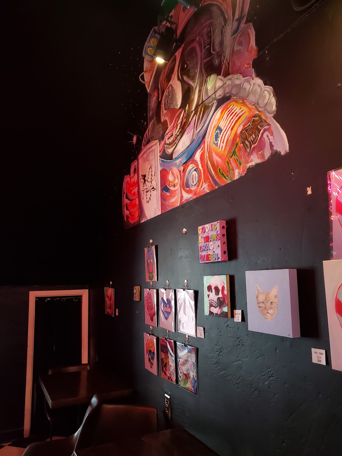 The second time I brought friends because I liked it so much. They have local art you can purchase that rotates monthly. I purchased another pound of coffee, this time a pound of their whole bean medium roast, and a piece of art from the wall.