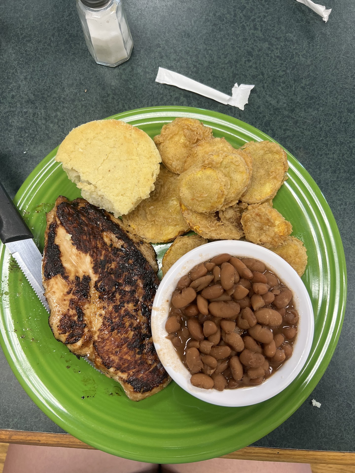 Read moreThis was the worst food I have ever had!!! My wife and I met here for lunch. We had both had heard good things about their food, makes me question peoples judgement. My wife ordered the Country Fried Steak with Collards and Fried Okra. I ordered the Chicken Pie with Mashed Potatoes and Green Beans. The food arrived COLD, not warm but COLD!! The gravy on the Country Fried Steak was congealed, that cold. The Greens aside from being cold had no seasoning and were swimming in their juice. The Okra was cold and setting in its own grease. My Chicken Pie? if you can call a can of cream of chicken soup and 3 tiny dry biscuits chicken pie was cool, not cold like the other food. The mashed Potatoes (cold) were instant potatoes and the gravy was congealed. The Green Beans were cold and had zero seasoning. I have no idea how this place remains open. As a first time customer nobody instructed us on how to order....You have to order at a counter (and they have the audacity to ask if you would like to leave a tip, for what I had to get my own drink) and they bring you your food. The food was horrible, I can not stress that enough. Lunch for two people was $25.65, portions for the sides were extremely small. OUTRAGEOUS!! I will tell everyone I meet to stay away from this place!!!!! Like my wife said the best part of her meal was the Dr. Pepper. STAY AWAY!!!!! THIS IS NOT...