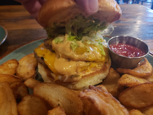 I ordered the B&B burger, my husband got the beet and burrata salad, our friend got the house burger. We all loved our meals. I had to get my burger well done since Im pregnant and it was still a juicy burger. The corkscrew fries are pillowy and flavorful.
