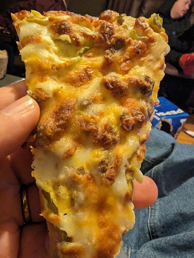 Happy Joe's BLT Pizza - perhaps the weirdest-looking, best-tasting pizza ever! Fantastic. No one does BLT like Happy Joe's (and few even try). Happy Joe's is one of the first favorite-eats stops I make during return visits to the Midwest. Probably the best Taco Pizza ever as well. They really do pizza right. Their "Special" of Canadian Bacon and Sauerkraut is also amazing (as weird as it sounds too). Be sure to ask for your favorites during their lunch buffet - they are extremely accommodating to requests (even as far as their Chicago Style deep dish, which is the true, stuffed-crust, marinara-on-top style). If you don't live by a Happy Joe's, you wish...