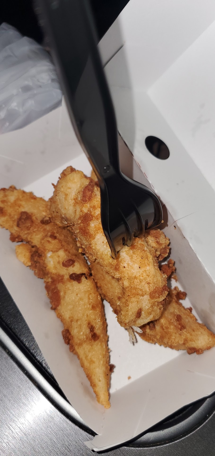 Read moreOrdered Chicken strips afterwork & in route home first order old / not as warm as I d like. Waited 10 mins. to receive a 2 nd order that was not cooked in entirety. You can look at these straps and tell the difference. The young lady at the drive thru was a bit abrupt and upset that I d returned for quality food . I ve only been to this location a couple times but this was definitely my worse & not impressive for future visits. Dave the Manager was accommodating trying to prepare the 2nd batch which was a epic fail. I was invited to return to replace the order at a later date. Time is value & if customers have an appetite for quality food some things hold a lasting...