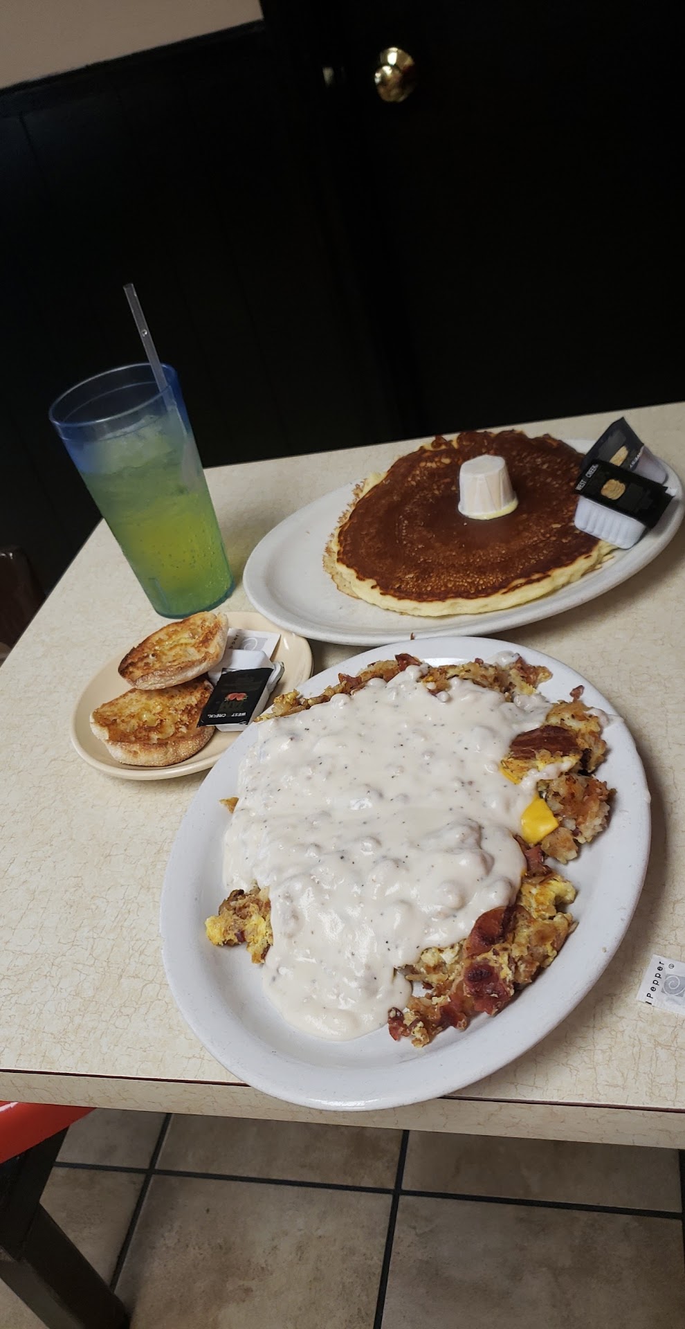 Payton and I ordered Country Fried Chicken, Eggs, Hashbrowns and an English Muffin. Grayson ordered the Large Pork Tenderloin Sandwich with Fries and Baked Beans.