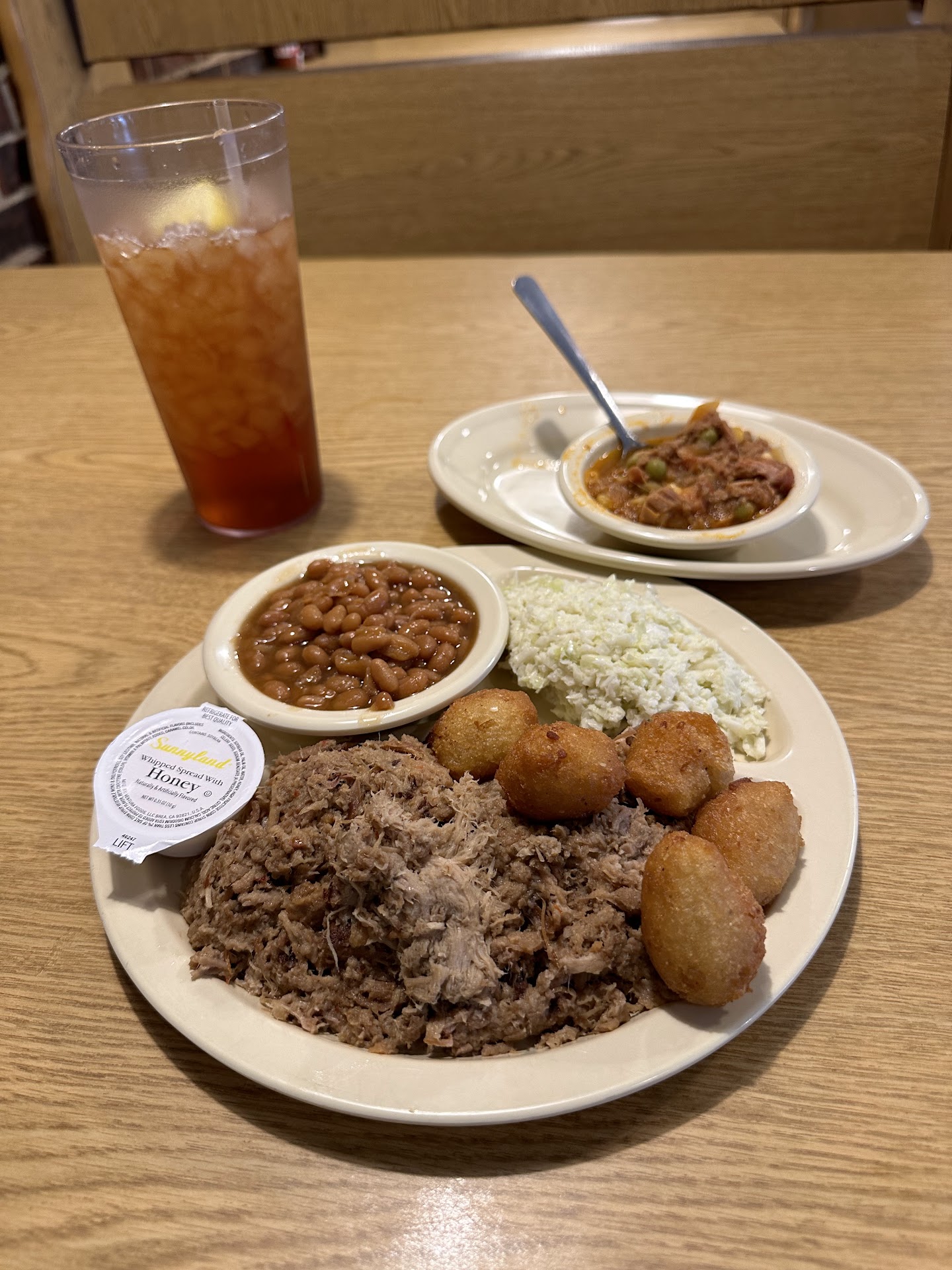 Read moreThe lady at the drive-thru window was very polite and friendly so that's why I gave 5-stars for service. I didn't give any stars for atmosphere because we were in drive-thru. Now let's talk about the food....my husband and I ordered two BBQ sandwiches because we just wanted something to eat quick. I really wish I took a picture of the two sandwiches. They barely put BBQ on it and a pinch of coleslaw in the middle of the BBQ. I was in uttered shock at how the ratio of BBQ to bun was unproportionate. We literally had to lift the bun to even see there was BBQ on it. UNBELIEVABLE!!!! The BBQ was so finely chopped you could barely taste it and it was so soggy that it made the bun soggy. Wait for the price....$11.79 for two soggy sandwiches with a smidgen of BBQ and a pinch of coleslaw. Look I totally understand that everything is going up because of the state of the economy, tariffs. So paying more isn't the issue but to receive that kind of food is substandard customer service and isn't the type of service I would like to patronize. I wished I had taken a picture of those sandwiches just to let everyone see it, but I was driving. We were too caught up talking about the sandwiches that a picture was the last thing on my mind at the moment, because I'm sure it is hard to believe unless you see it. Trust me I wouldn't waste my time to write a review about something that didn't actually happen. We plan on stopping thru again just to see if this is their normal portion or just a mishap......I promise I'll take a picture next...