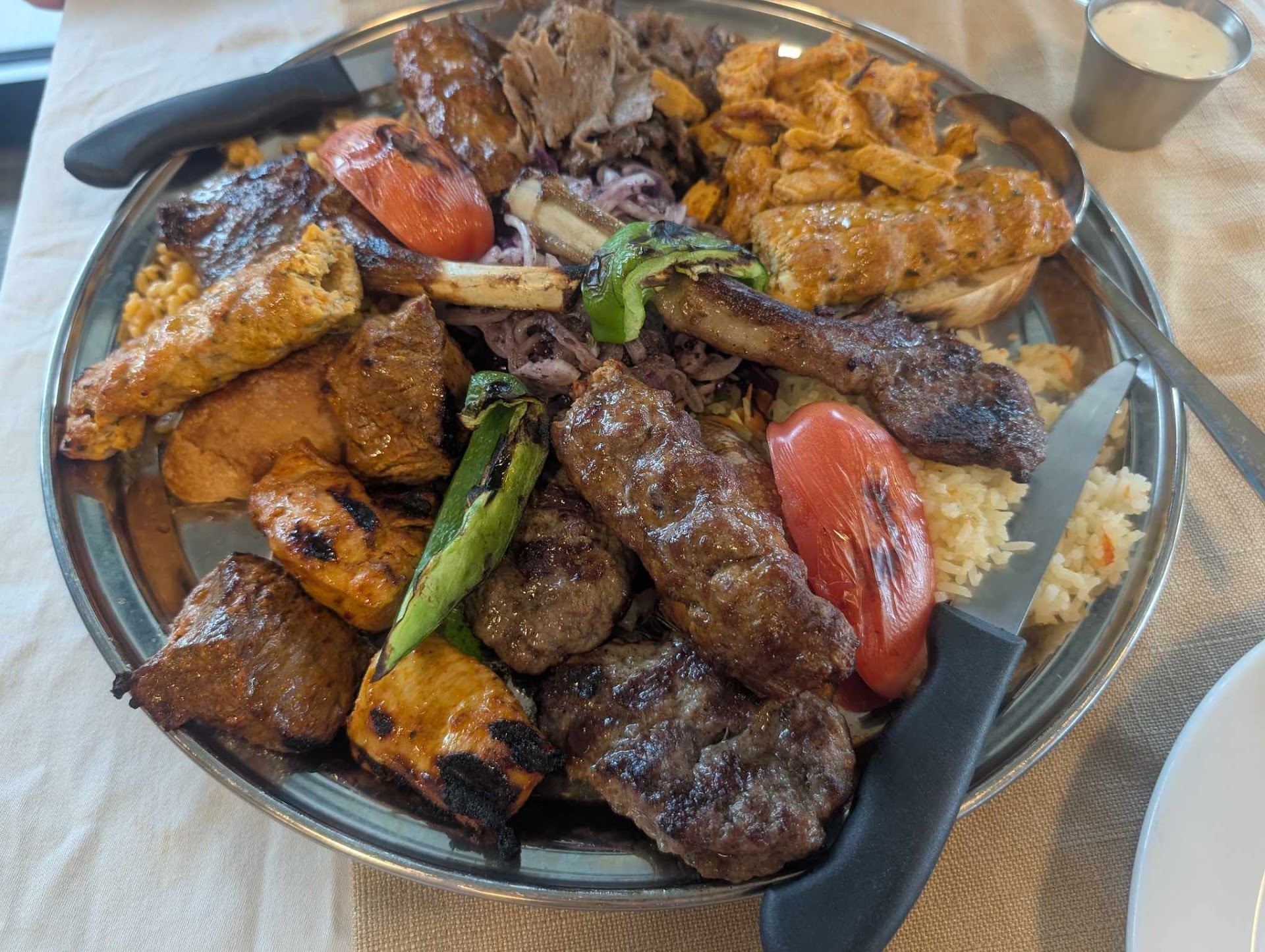 Not stopping there (because why would we?), my wife and I shared a combination plate, and every single bite was grilled to absolute perfection. Juicy, flavorful meats, perfectly cooked rice and bulgur—it was like a greatest hits album, but for food.
