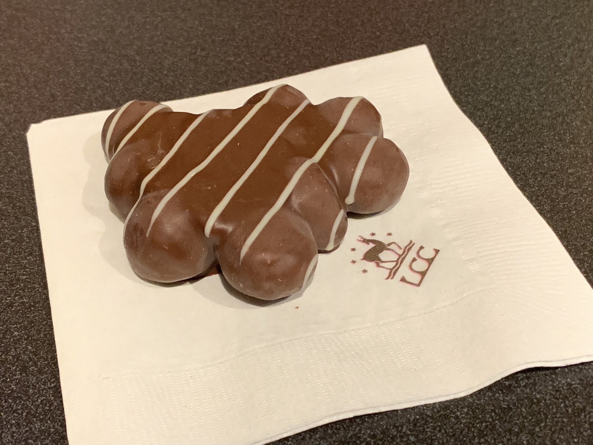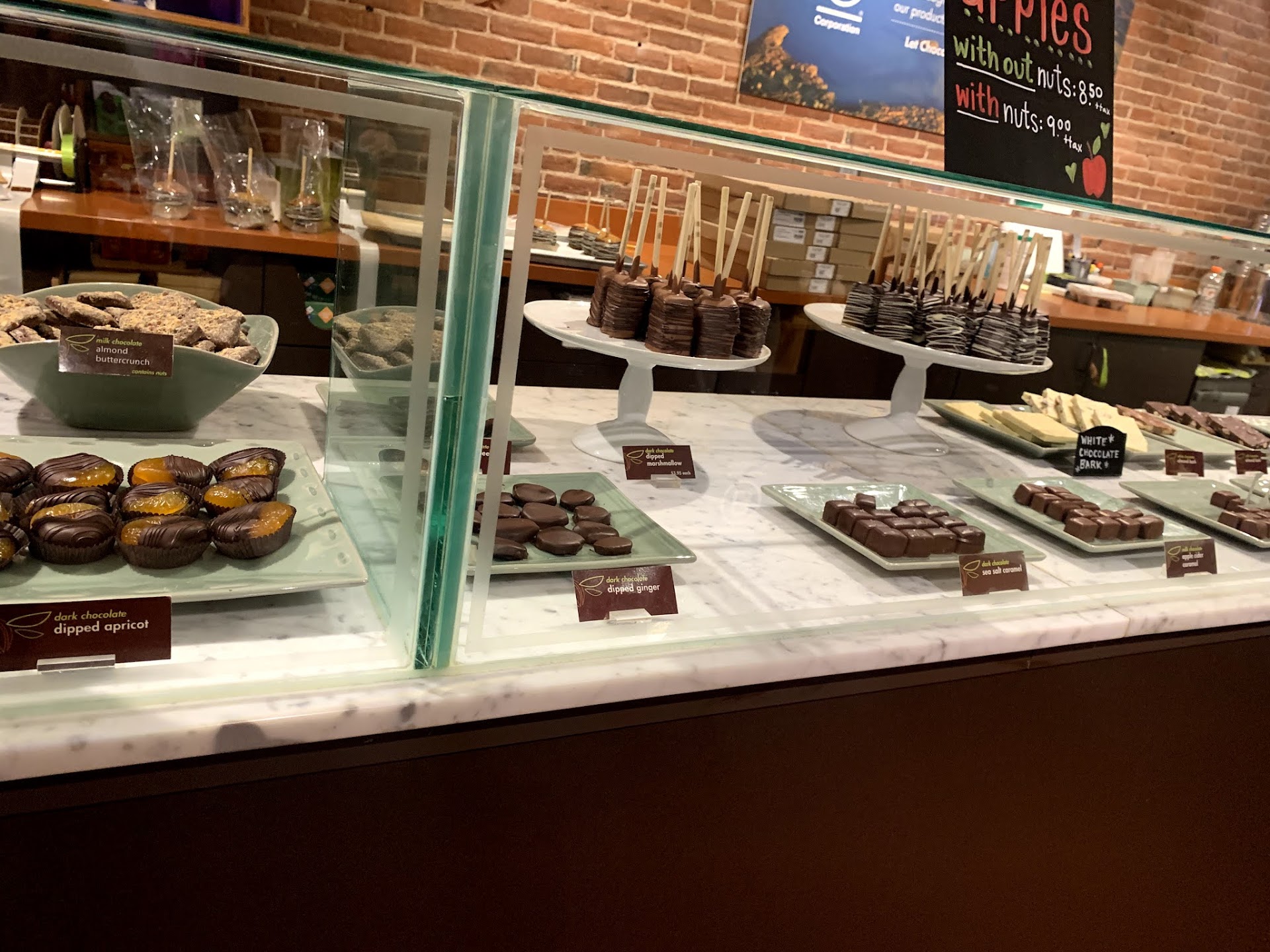 Read moreAll the chocolate here is top-notch! We've bought their hot chocolate mix before, so I was very excited to get to visit a Lake Champlain Chocolates store in person. It didn't disappoint, with so many different chocolates, truffles, barks, and even ice cream and hot or iced chocolate! We purchased a maple bark, peanut butter cup, and macadamia nut cluster (pictured) and WOW, they were good. The macadamia nut cluster was incredibly rich and flavorful, and was large enough to be a dessert on its own! The maple bark was outstanding, and my husband said the PB cup was super tasty! The chocolate isn't cheap--the total for those three items was $14.70--but the quality is excellent, and it makes great gifts. Definitely...