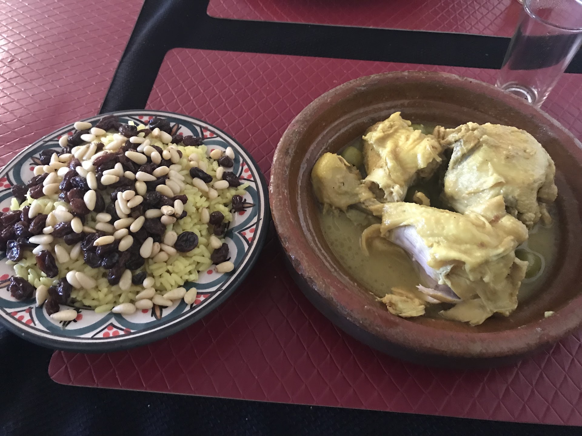 After the appetizer, I could not wait to try the entrees. We ordered the seafood ($26) and vegetarian tangier ($16). They were served in interesting clay dishes with clay covers. Both, unfortunately, were lacking. Their flavors needed more intensity - more spice. My seafood dish was mostly white fish - 3 shrimp and bits of calamari. The rice that came with it was perfect. It was also served with vegetable side dish, we didn't care for it. It tasted and smelled like damp old wet grass. They would be better off serving more rice with the meals.