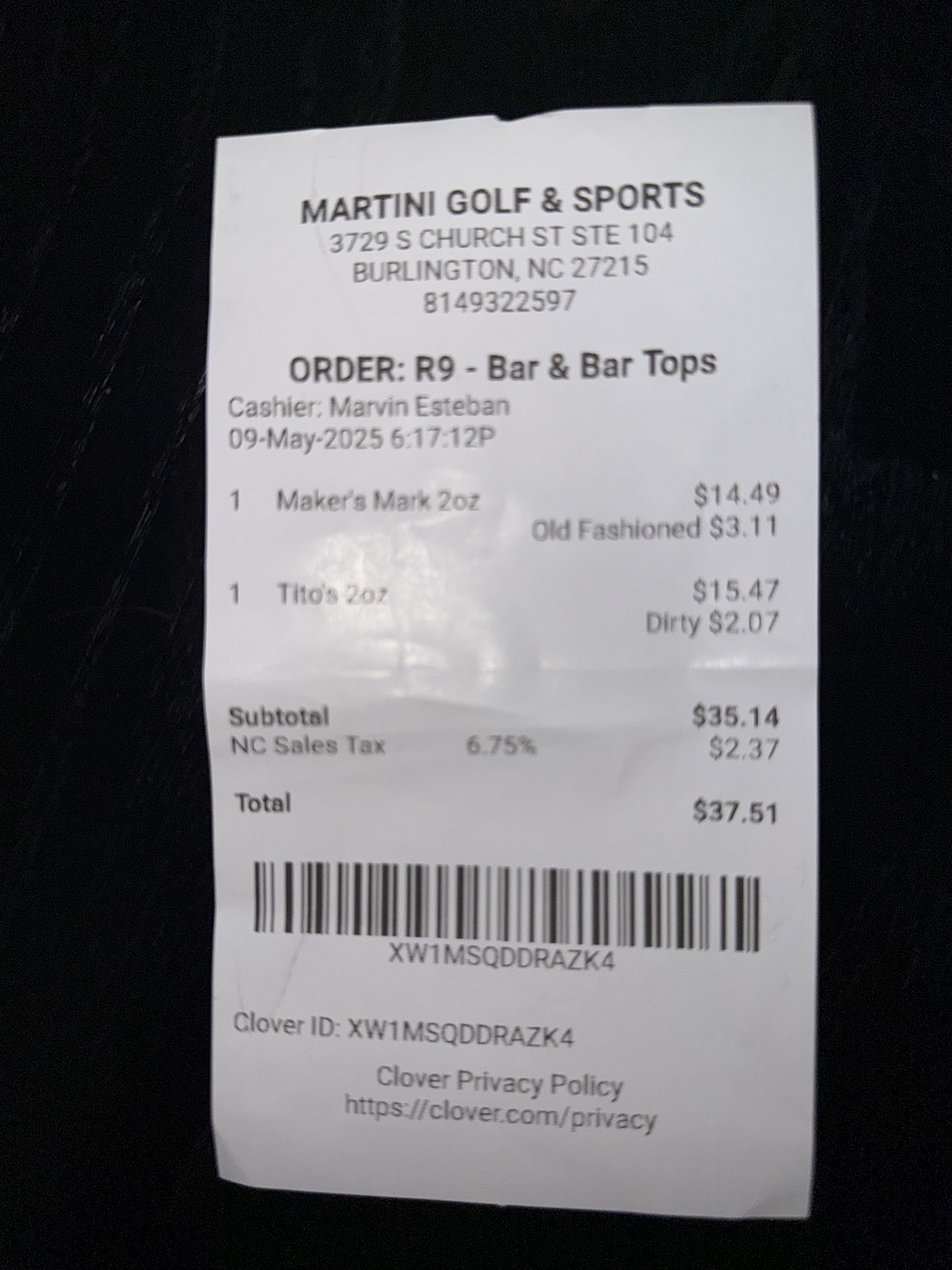 Read moreMy husband and I came here tonight for a cocktail after dinner. The place is very nice and unique for Burlington but the drinks are RIDICULOUSLY priced. I had a dirty martini that wasn’t dirty and very watered down. The blue cheese stuffed olives were from a jar, not freshly made and dried out. My husband had an old fashion which was better than my drink. Our bill was $37.51 before the tip which ended up being around $18.75 for each drink. After the tip these drinks cost $23.75 each. That is the price of an entire bottle of Tito’s. That is absurd especially for a bad martini! I can go to 584 to get the same dirty martini that isn’t watered down and they put real blue cheese in the olives for $5 less than what you charge. You may want to bring down your prices especially since we were the only 2 people in the place on a Friday...