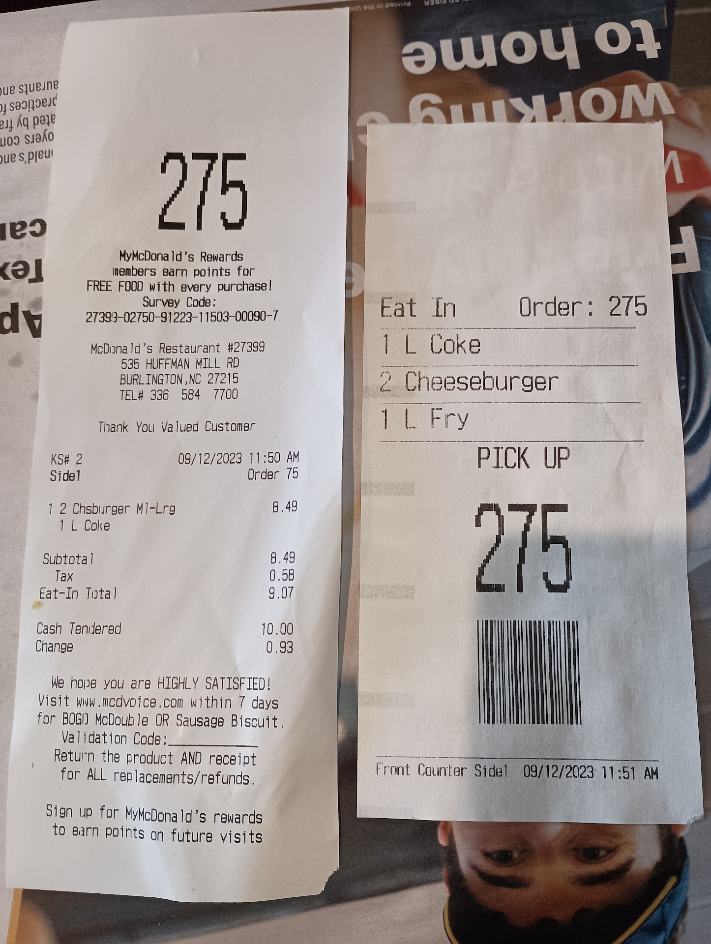 Read moreThe sign at drive thru stating 2 for $5 was confusing, to my husband and I so we asked the employee that was taking orders and she didn't clear anything up, what so ever. All she basicly did was read the sign as we had already done. What we were wanting to know was "what exactly is 2 for 5?" Was it just the fish sandwich and fries or were the other sandwiches (crispy chicken sandwiches included) and if it was just the fish and fries what did it mean by mix n match, did it mean 2 fries for $5 (bc that's crazy pricing) or 2 fish sandwiches for $5, it was confusing. Since she couldn't/wouldn't clear up our confusion we only ordered food for 1 person instead of the 4 ppl we had went there to buy food for, and the ONLY reason we still ordered anything was bc my husbands sugar was dropping he needed to eat right away. Then we had to pull over, into a parking spot and wait for our food. We still have no clue why we were waiting because neither the chicken NOR the fries were hot. Also the bottom bun of the sandwich was burnt. The top may have been as well but there was so much sauce on it there was no way to tell. At the 1st bite sauce went everywhere. This being my husband's 1st time tring the new spicy crispy chicken sandwich, it was definitely a bad experience from start to finish. If we hadnt already left the parking lot as he started eating I surely would have taken the bag back inside and asked for a full refund. And just bc we used our app and received a large fry for only $1 doesn't mean I deserve hard cold fries. We expected a much better out come at this McDonalds, and we were...