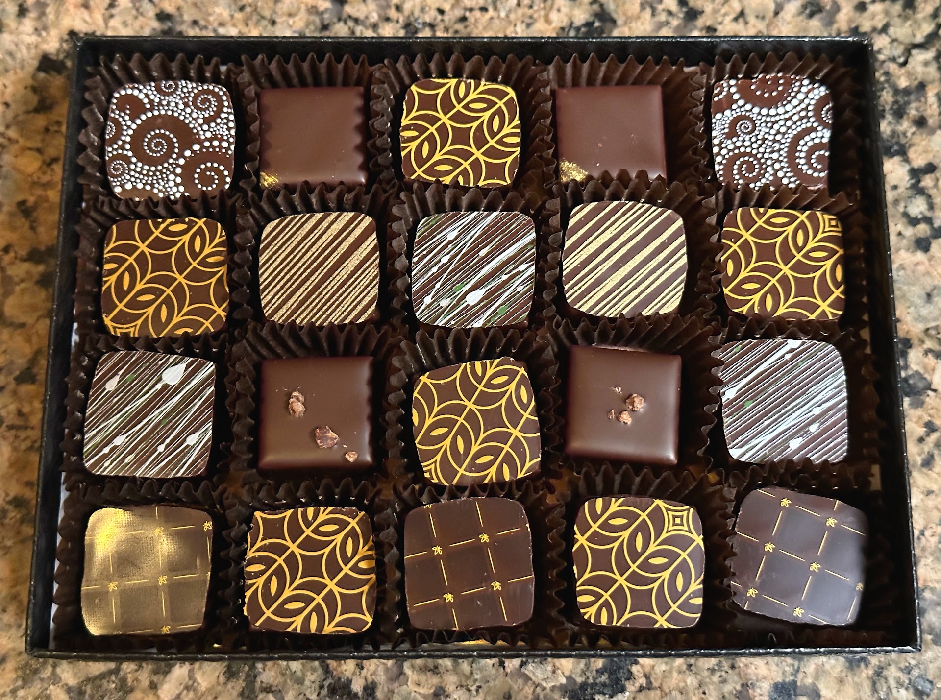 Excellent, complex, and unique chocolate truffles and more! We’ve wanted to visit NU Chocolat for quite a while, and finally got around to doing so. I can safely say this will not be the last time coming - this place is so good! We were greeted by a friendly staff member right upon walking in, and the best thing about this place that we found out very quickly is their free samples!! They have like 20 diffeeent samples to try - most chocolate shops don’t do that. You may get one thing, and that’s just a simple generic milk or dark chocolate. Here you can try their white chocolate truffles, cocoa-dusted almonds, apple cider caramels, and more!! We ended up getting a big box of 40 chocolates because they were so good, and while it was very expensive, everything was excellent.