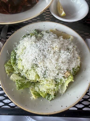 Cat M. our server new her menu very well and tour guided us expertly and helped us choose a Cesar, and the arugula salads as our starters. And the parparadelle Al fungi and the lamb ragu with gluten free pasta as our main entree' (note I do have a small gluten allergy and minor issues with dairy Cat made some excellent suggestions and made sure the parn was put on the side).