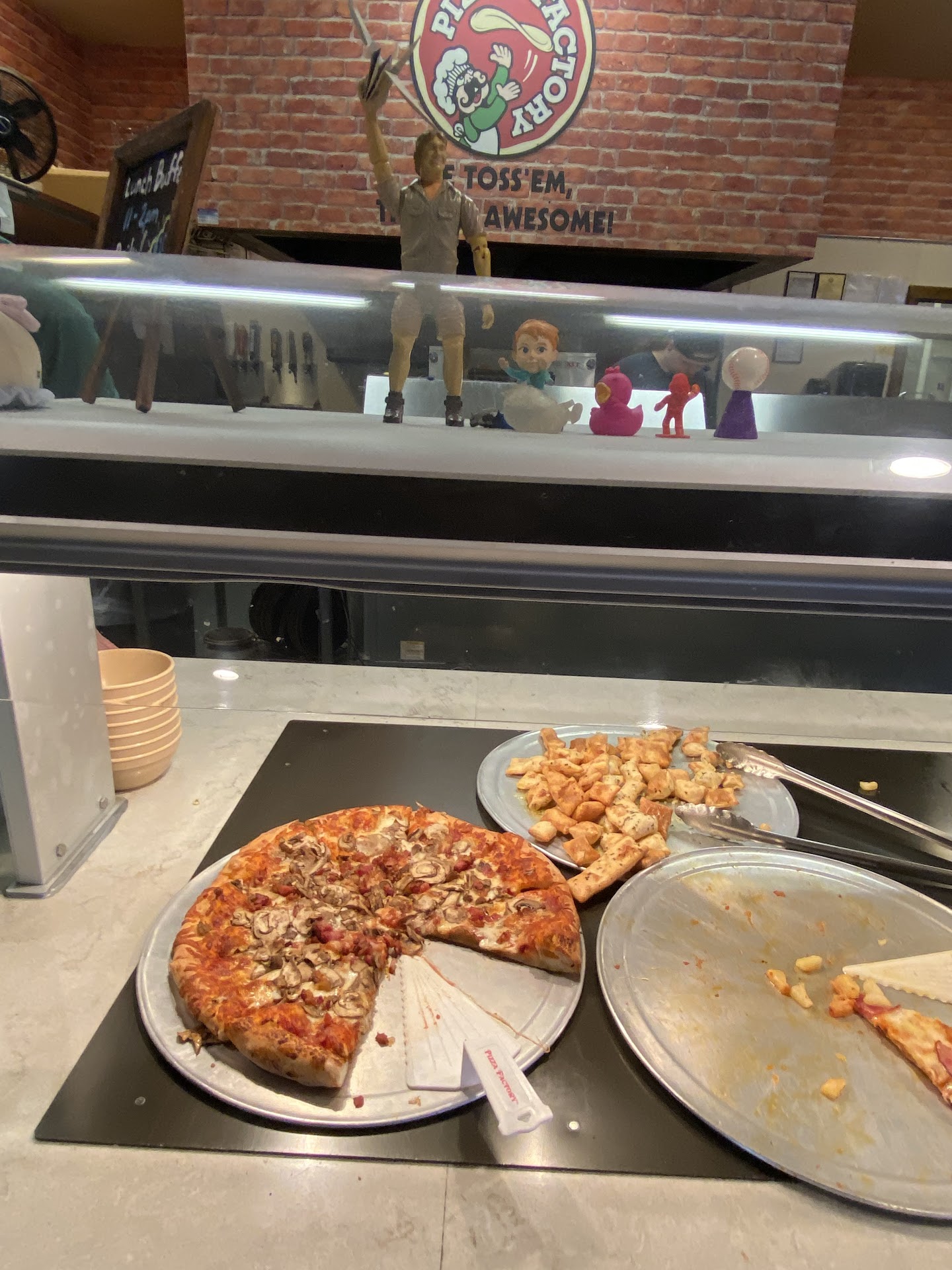 The service didn't end there. Food was continually prepared to ensure all items in the buffet was fresh. The pizza was piping hot fresh. The manager knew some of the customers and made sure to make their favorites available. Messes were cleaned promptly.