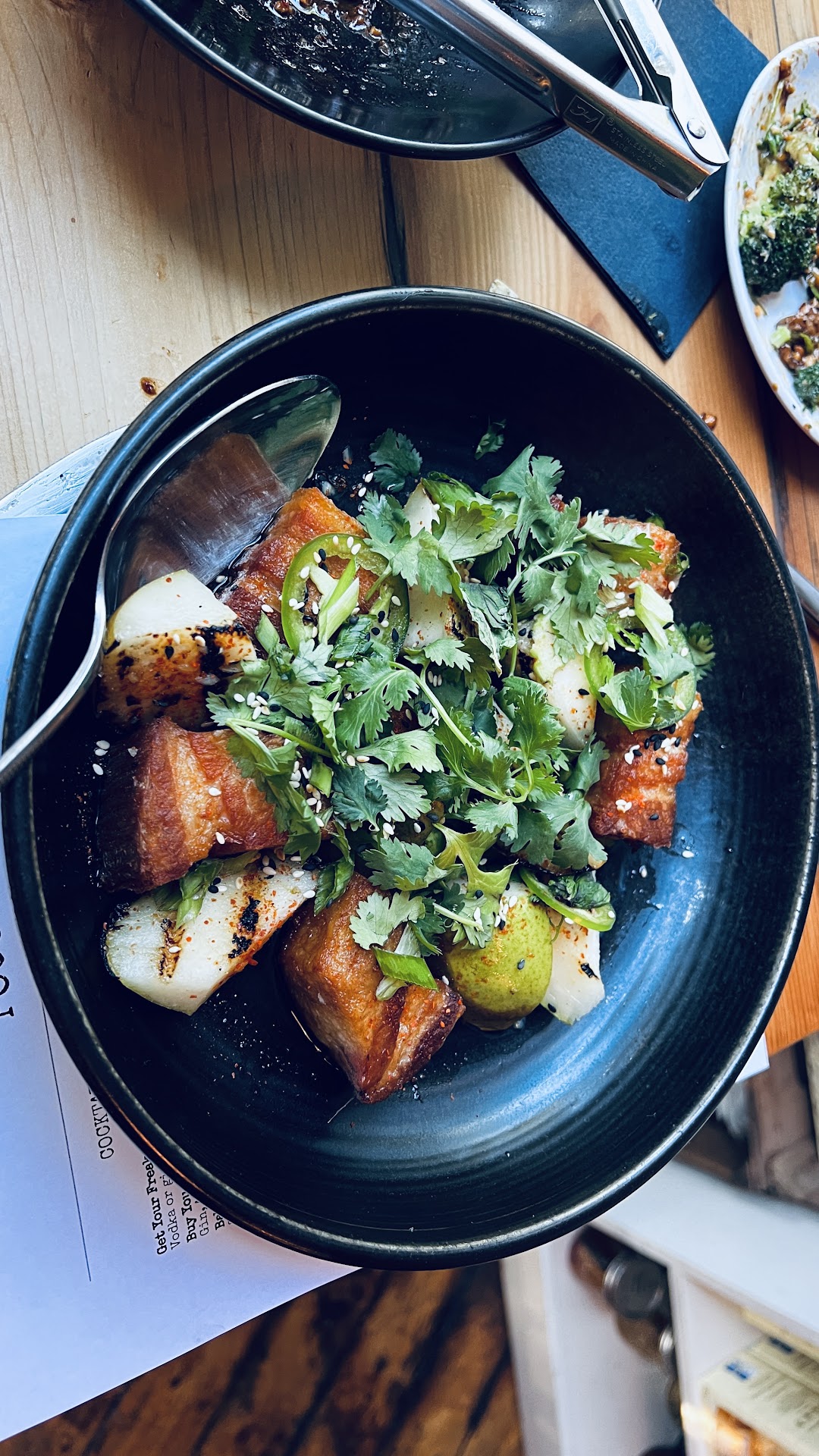 The entrees are meant to be shared and come out as they’re completed. While the suggestion was 2 dishes/person, we ended up fine with 3 selections but did get dessert.