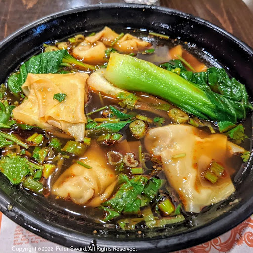 Hot and Sour Wonton Soup (For 2) ($7.50). I expected this to be the normal H&S soup with wontons thrown in. It was not. A delicious broth that was really hot and sour filled with Wontons and Bok Choy. There was a good amount of wontons, but not as many as on my last visit. The first time I tried this, I was surprised at how good the broth was, not something I expected to like, but the balance was perfect. Don't miss this gem in the soup section.