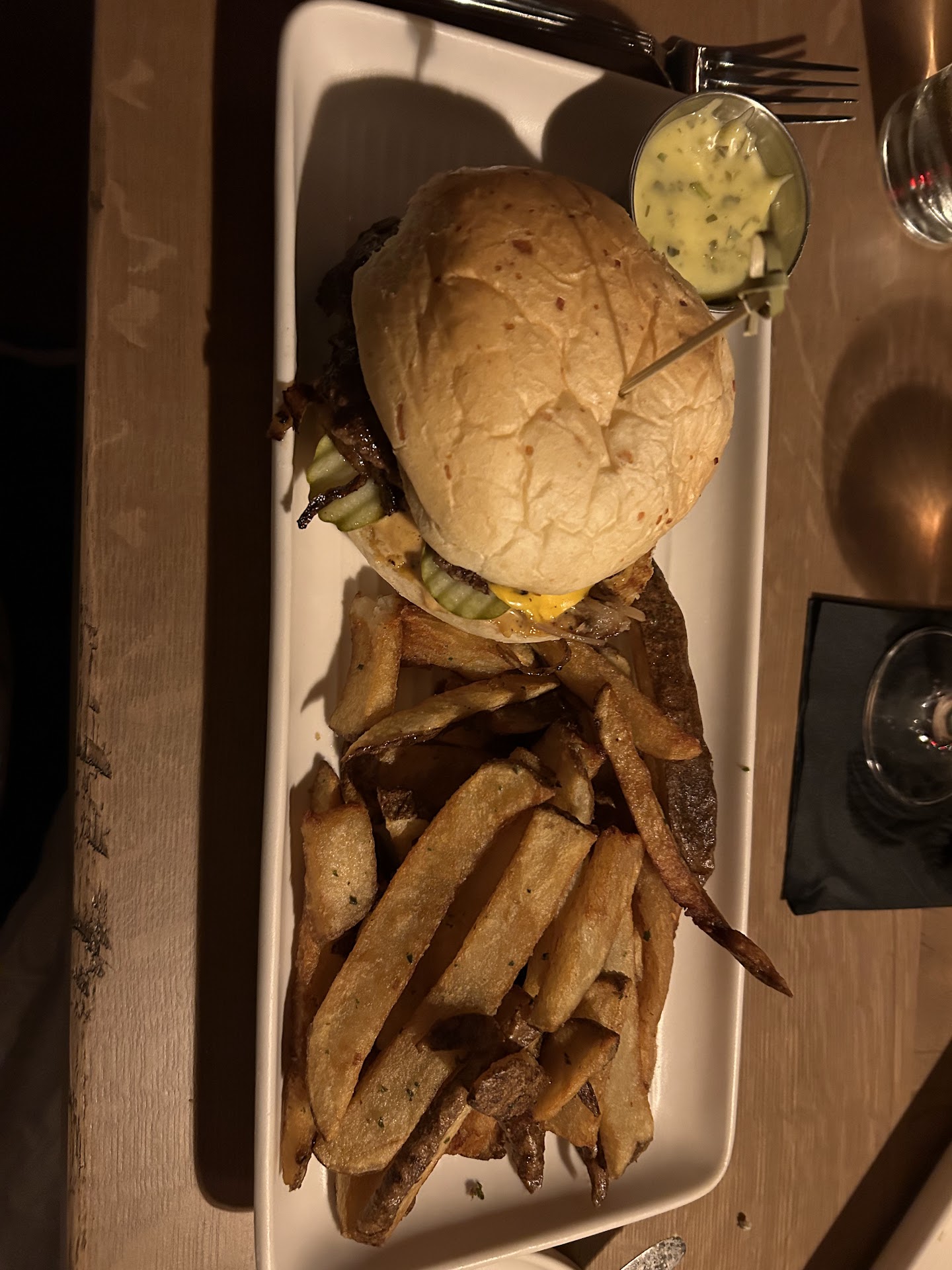 Read moreWe went here because we love the train wreck so our expectations were high. When you first get to The location, it’s a non marked door with a fake barbershop door as the secondary entrance next to the bathrooms. Inside, it was packed! It’s a small place but quite popular. I went with the smash burger which was quite good and then we choose some apps for the rest of us. The charcuterie board was good but needed a few more crackers. The steak poutine was quite good and the steak was very tender. The salad was a large portion (not a complaint)! The other item we got was the salmon deviled eggs. It comes with 4 so that means I got to have 2! HA! Over all, the atmosphere was quite well done, service was great, and although we came across some great menu items there are more items on the...