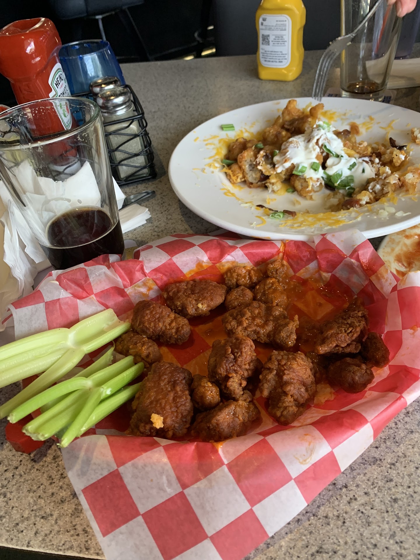 Read moreStars BC I am low maintenance. The place was super busy and really could have used a Food runner and busser to assist the servers. I was in BC I was in the area on business. Had to wait for my arrival to where I needed to be. Therefore I stopped in for a taste of local food and Atmosphere. I met the lead Cook and the one who cooked my burger (with shrooms and bacon) I would like to mention that the Bun needs to have MORE texture. (It basically fell apart- not cool). Chips and salsa were pretty good. Pretty sure they were made in house as the menu states. Lots and lots of TVs. Pool tables for all. A split restaurant. Bar area. Dining area. Pool area to the right and left far said. First time I've seen that. However the parking is tight for the occupancy level. Which may be good. That way guest wont be crowded in. My pitcher of Mac-n-Jack 20$. Burger 17. Chips and salsa total 50$. Place was well lit and clean. The servers were well spoken and smiled. The guest all seemed nicely dressed as far as clean and comfortable. Carpet through out. That's nice. Keeps the decibel level down. Would definitely return solo or would take others as well as recommend. Service for 8 was happening and seemed...