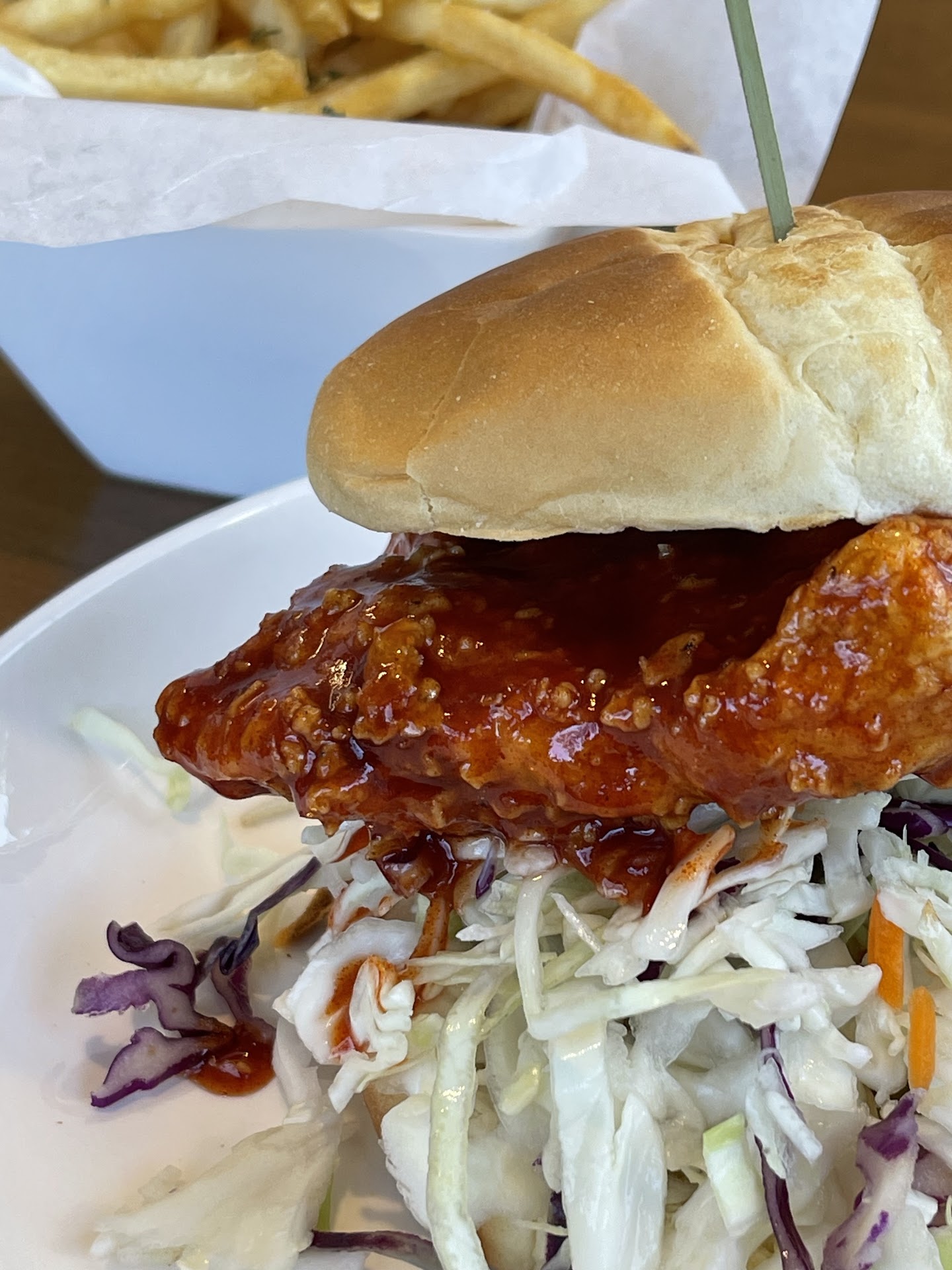 Their sweet and sour sauce is my new favorite of the genre, though it’s not my usual, and it was delicious in a beautiful and delicate way. Next time I would ask for another condiment to cut through it and push it forward — something pickled or zesty perhaps to go with the fresh slaw, though that may make it a different sandwich. I probably could have asked for their other sauces to try on the side as well, which I expect would have been wonderful to dip fries in.