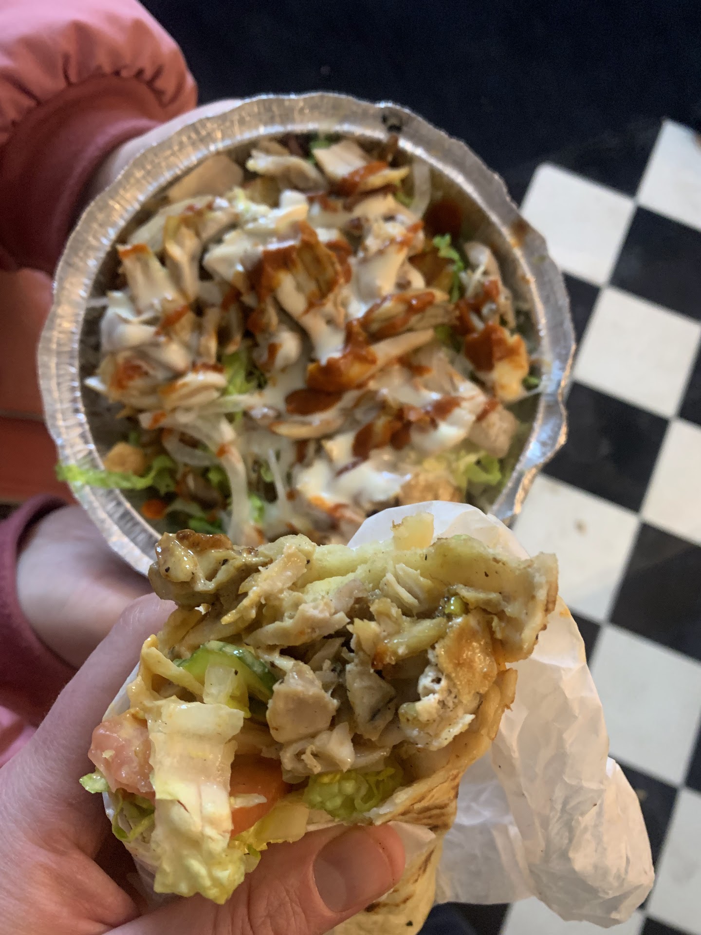 I got the Shawarma chicken over āfancy riceā and a small hummus with a lafa and it was all right. The chicken did not seem fresh (I showed up just after they opened and seeing how theyāre closed on Tuesdays and I went there on a Wednesday. I donāt know how the chicken would be old) and was generally not super flavorful. Also, the serving size was all right, just donāt expect a ton of food tho. The lafa was pretty soft and could definitely use more time on the grill and the hummus was fine but the olive oil to hummus ratio was a little crazy. I got a side container of zhug and it was tasty