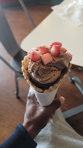 Long story short I got froyo and decided to mix some cobbler flavors, what I forgot was cobbler is very hot and froyo isn't ice cream so it will melt faster. By the time I was done making my cup it costs 12 dollars. But it was also basically a cup of soup with cobbler in it. While the idea of froyo and cobbler sounds great don't forget froyo is not ice cream and it will melt fast.
