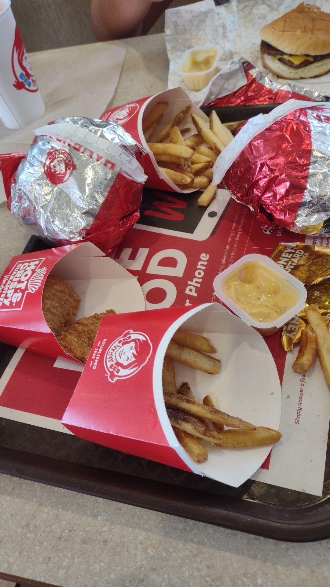 Read moreMe and my wife previously worked as managers in another location we waited for quite some time. When we did get to the front of the line one employee had just ended shift at 4:08 got her belongings from under the register and just walked away the other cash register operator just ignored us for almost two minutes there was absolutely no acknowledgement not even a I'll be right with you. With that being said the food was great it was not properly dressed according to the Wendys way but the meat was fresh and so were the fries. Rating as a one because the extreme lack of customer service no smiling faces sluggish moving there was no thank you and the greeting was not anything but a lazy one. Doubtful that three different greetings at the lamest were even gonna be used. (the plain basics of customer service) no one was cleaning tables and the cashier the young African american girl was swearing right there in front of...