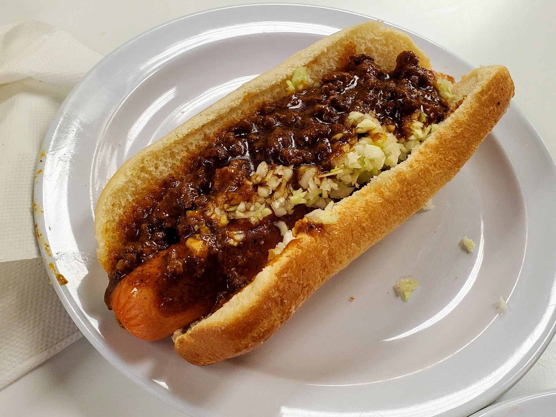 The hot dogs are an odd, glowing orange color and have little flavor. The slaw has NO flavor. The chili, for which they claim to be famous, is too chunky and the taste is nothing to get excited about.