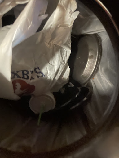 On top of all the trash mess of the employees. I went around the building. Went inside, which was packed and a sign out the the dining area was closed.