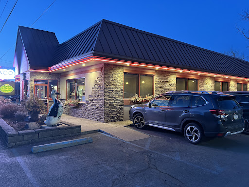 The decor and seating is booths much like a diner. But my artist partner says the murals and other artwork are all...