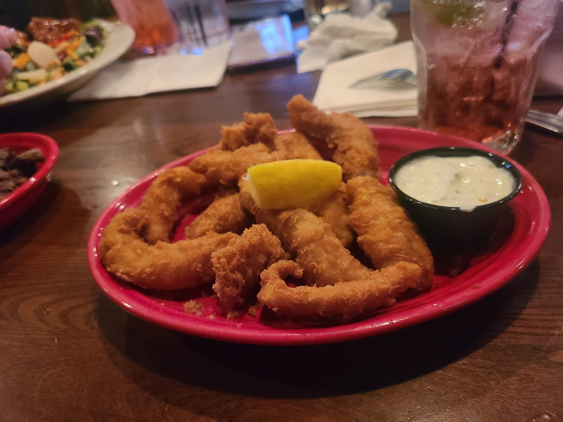 I had some dinner with my family here. I had the walleye dinner with cheese curds as an appetizer. My mom and aunt had the nachos, and the beef tips and then steak and shrimp respectively. They stated their beef was nice and tender, but we all found our potatoes underseasoned. Once we added some salt and pepper, the flavor was good and the texture was really nice. They didn't bring out my mom's beer right away, but we're kind enough to comp us that due to the mistake. The biggest thing, though, for me, was that my walleye was FULL of tiny little bones. I've had fish with bones before, but I'm usually warned. There was no warning here. The flavor was ok, and I think the fish was tender, but I spent so much time chewing trying to identify any little bones so I didn't choke I couldn't really enjoy it. In retrospect, I really should have sent it back right away. I don't usually expect bones in walleye when I eat out at a restaurant. Sometimes I might find one or two, but it seemed to be in every bite. The cheese curds were amazing however. Crispy on the outside, melty on the inside. Those, the texture of the potatoes, the tenderness of the meat, and the correction of the mistake with the beer earned the 2 stars instead of one. I suppose the atmosphere...