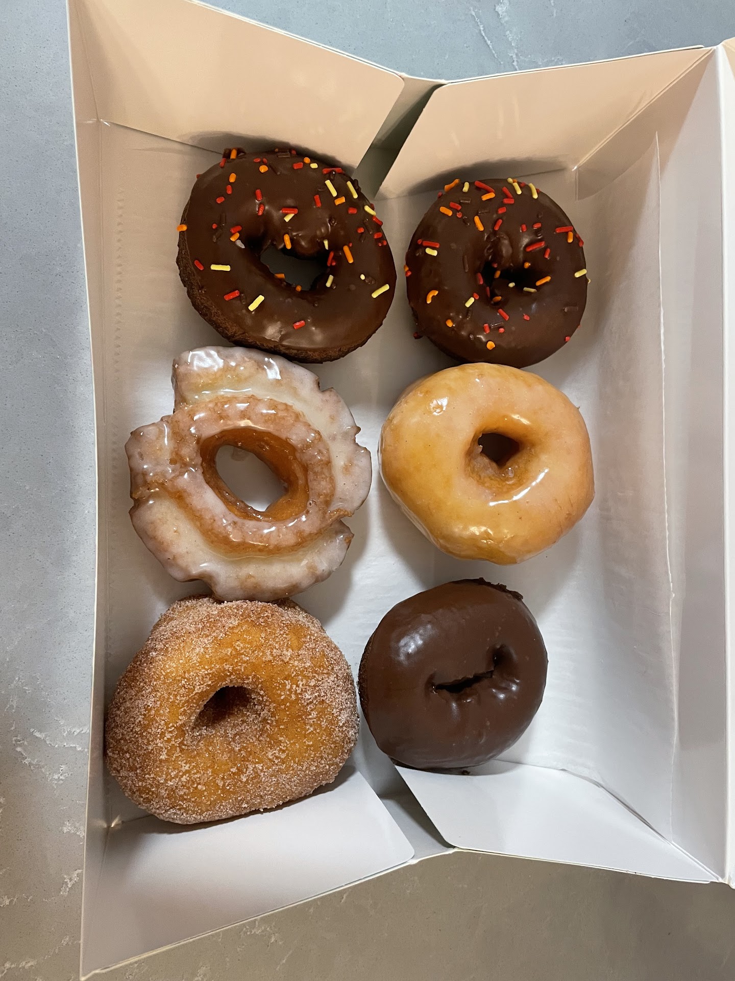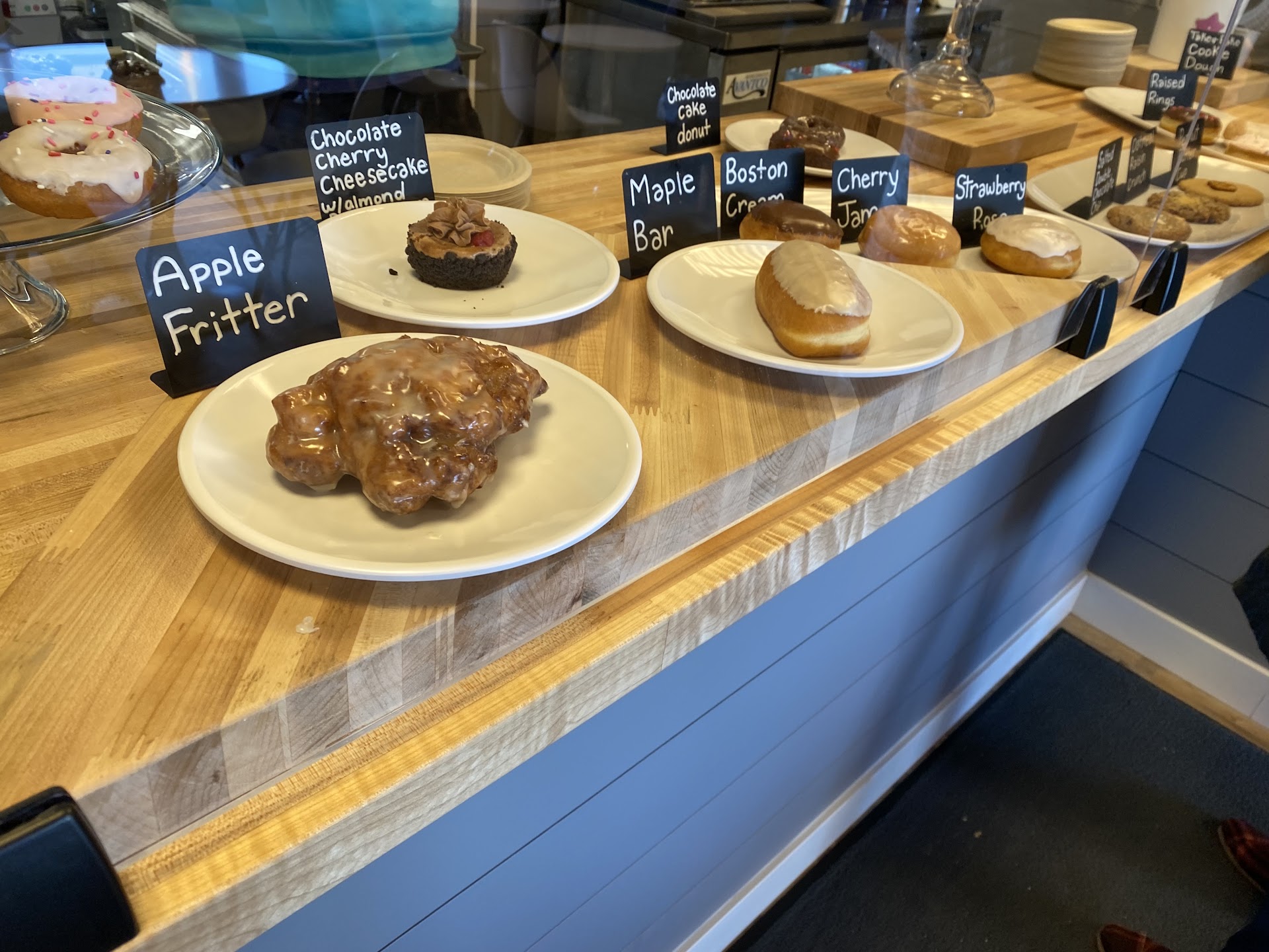 I arrived at 10 am because their hours are limited Mom - Thurs from 6 am till 12 pm and Fri thru Sunday from 6 am till 2 pm. Found out they bake their selections early in the morning until they sell out then close till the next day. Advice here is getting your selection early in the morning. When I arrived the selection was limited as I was craving glazed donuts and Apple fritters. I got 4 Apple fritters instead as my Mom loves those 2 for her, and two for me. McDonald's used to sell Apple fritters at one time, but not anymore. One can order donuts from this place thru DoorDash as well.