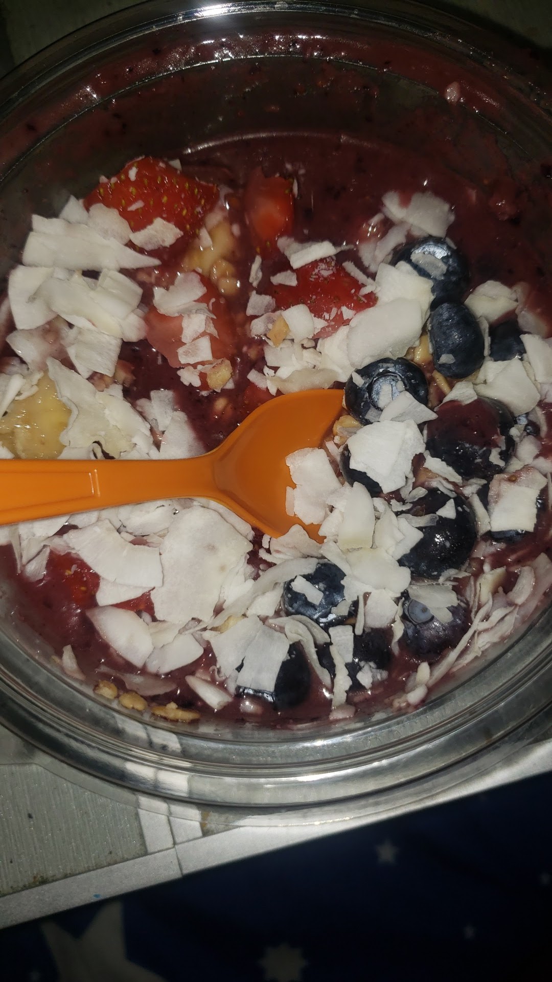 Read morePartner just brought be back a acai primo bowl with extra shaved coconut. *Firstly, this looks like less portioning than any time I've went to a jamba semi-recently- unsure if sizes changed but I notice its typically just under the first initial 'ring' of the bowl. *Secondly, the banana coins that came on my bowl have brown/sad looking edges & middles, basically looking & tastes pretty old.. unfortunately, plus no honey on top. I know this is a newer location and I'm excited for it, however seems like Employees may need some quality checks.