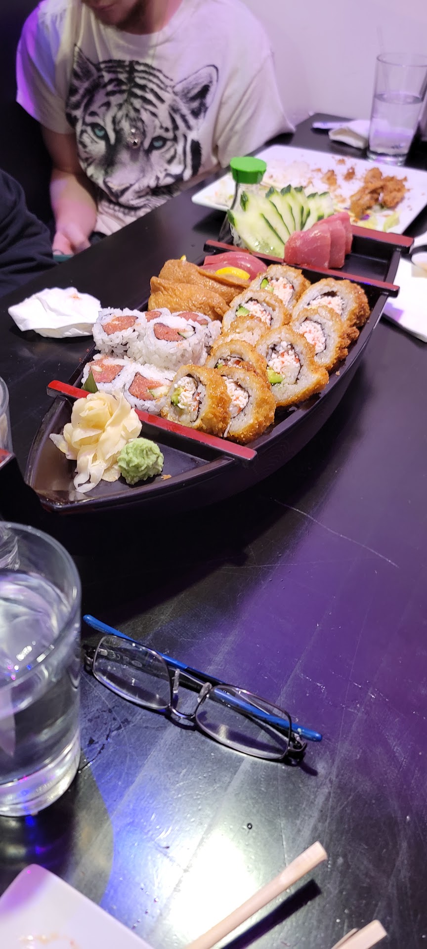 The service. As many other people have said, the service here is phenomenal. I had only been here one time and I left a review on their Facebook page. When I returned for my second visit, the host and server (who is one of the owners) greeted me AND thanked me for the good review. Wow. Aside from that, they're quick to make sure that you have drink refills and that your table is cleared of any excess plates or garbage quickly. If you're coming here solo or with a few friends, sitting at the bar is a fun experience. You can watch the chef (who is one of the owners) make your sushi and its impressive to watch. Be sure to leave him a tip as his plating is always very nice, the cuts of fish are generous, and the sushi is always very well formed and presented.