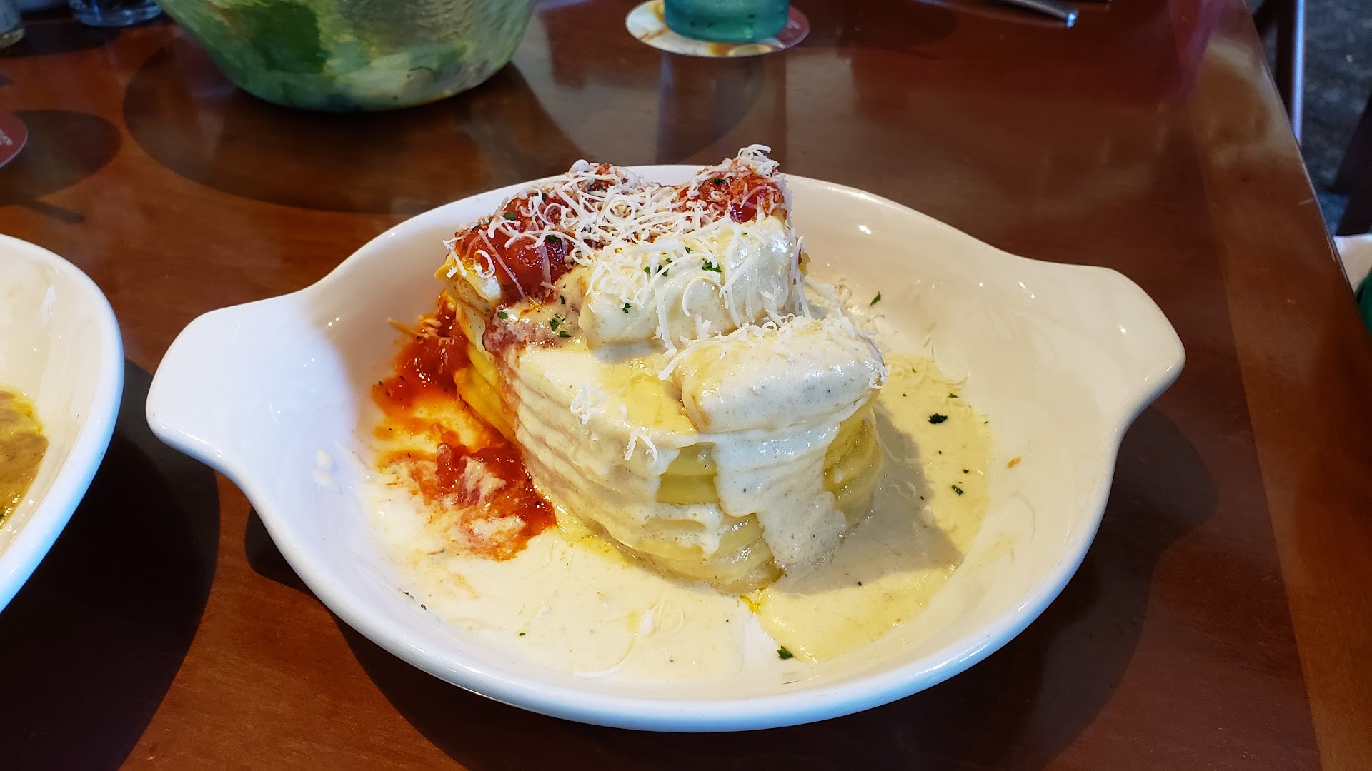 I had a feeling that the dishes were large amounts of food, and I was right. I knew I wouldn’t be able to eat it all, because in addition to the entree you also got either a soup or salad, and breadsticks, but had learned I could take food home with me. I hadn’t ever done it before, but I needed to today.