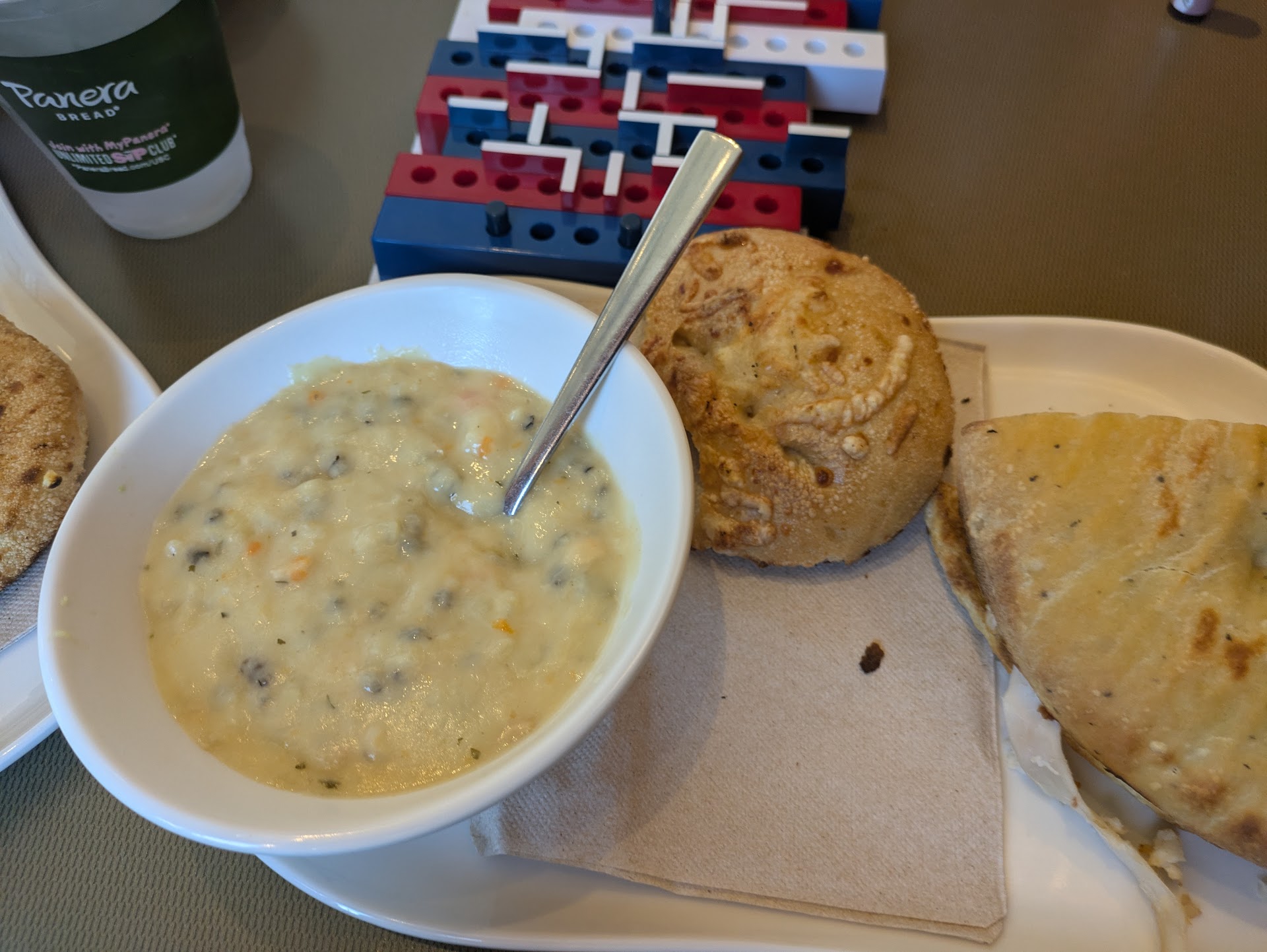 Ā Ā Ā Read moreLove panera but this location can't get it together. STAY AWAY from this one!!!!!!!! Last night I ordered 3 soups (for pick, FOR 3 people, had two baguettes in the bag and no butter. If I pay $22 plus $2 tip FOR SOUP I want all I paid for š¤š”) also was annoyed (mind you, im recovery from surgery and picked panera bc I thought it'd be fast and easy) my bag never got to the pick up area shelves, so after 7 mins of waiting, asked the back counter and she laughs and says "oh yeah, here's its been ready" So im alittle annoyed bc its the buzzer prep area and expected it be put aside or at least the top closed if it was ready..or you know...put in the correct spot. Just not what I needed, something happens every time I order from this location and I'm over it. About 2 months ago, decided to try one of the power bowls or whatever they're called, with broccoli and a protein. Literally looked like got some ones half eaten leftovers. It's just a bowl to go container (normal) but it wasn't even half full!!! Again paid like $15 bucks plus tip. Just not worth it at all!! Stay away from...