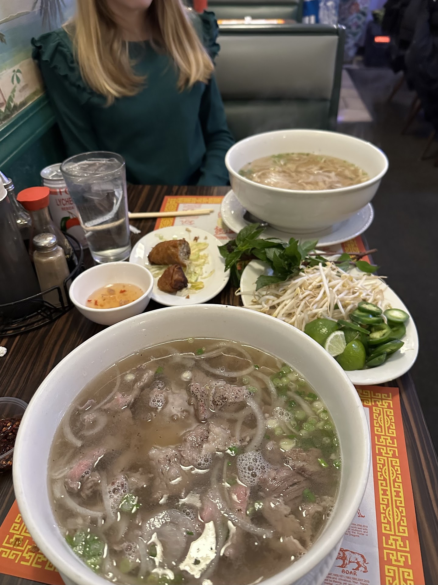 I hadn't seen my brothers in weeks and we tried sharing stories and catching up with life. We came here not just for pho but to have a peace of mind....to have a conversation. At 11:55am. The owner kicked us out, saying "customers are coming, you need to go!" (Btw We gave a very generous tip). This is so wrong. You don't treat your customers like this. This is not how you run a business. Totally wrong. We are civil. We can understand. There's no reason to do this by the owner. Put a damn sign on the front door: Eating only, No socializing. With 1 hr limit in your restaurant? Do better! Otherwise, there's potential for legal action.