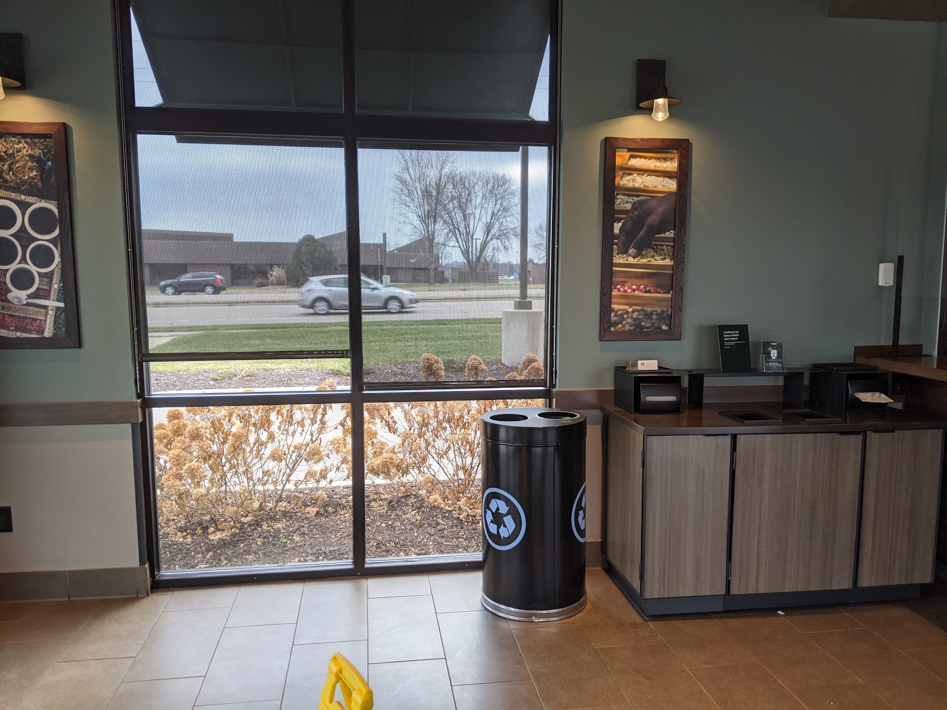 There are many times when I went and the place was dirty; sticky tables and garbage bags on the patio. This place is the main Starbucks in the City of Burnsville, and it is very disappointing that it is such an unpleasant place to be.