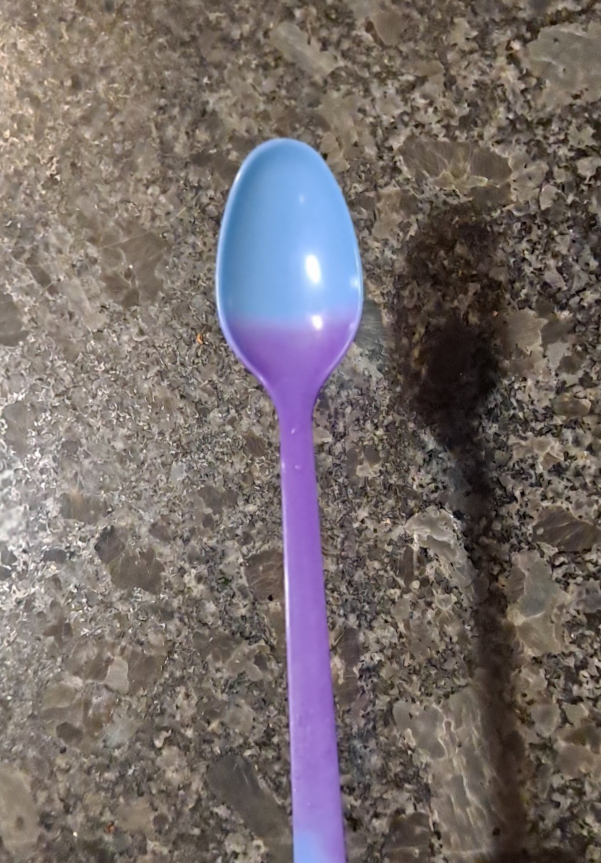 Updates: We ordered in the drive through again. This time I noticed the blue spoon changes colors! At first I thought the syrup dyed it, but later I noticed it was blue again when the ice was gone. I put the cleaned spoon in the freezer and it was purple again. Fun! We also didn't know there was a punch card, but they gave it...