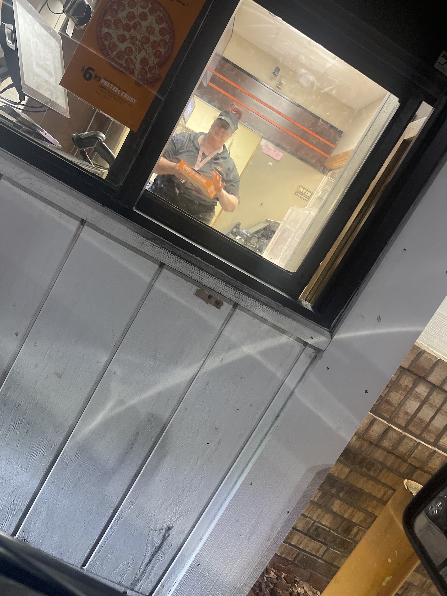 Read moreThrough ordering ahead for myself and family, and doing multiple door- pickups here, I've come to the staggering conclusion that this Little Caesars must pull random people off the street give them Little Caesars t-shirts and have them "work" in the store, on a daily basis. They must have some system in place not to get the same random people twice because you would think if anyone had worked more than a day here they would get the hang of it. But nope over years and historic consistently under delivers. If the app tells you it's going to be 20 minutes, Bank on 40, if they tell you 15 or 20 on the phone and another five. And if you're doing a delivery you can pretty much rest assured you will wait 15 to 20 minutes after driving 5 to 10 minutes and waiting another 5 to 10 minutes to get to the window, unless you give up and go wait in the store which has no chairs and does not have the self-service station available for doordash but does for regular customers. These people inside the store are wearing Little Caesars shirts and sometimes hats and sometimes but not often plastic gloves, they're handling ingredients and packaging materials and making motions on the cash register and opening the drawer, but despite all this orders take an eternity. Be warned if you choose to order here or your order from an app is routed here you're in for a long heart-wrenching and disappointing experience. Almost all of the other Little Caesars in the area are actually pretty good it making pizza and other such items quickly, and in most cases match the estimates given on the phone or in the app. If you are ordering through a delivery app and see your order routed here, do yourself a favor and cancel in order from another...