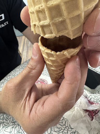 The ice cream was good but I had to wait for a sample bc employees were chatting. Then two different people made us our double dip cones and they were vastly different sizes for the same thing. I mentioned it nicely and was essentially told thatās just how it is. Plus, they said if you order the smaller cone you get more ice cream than in the larger cones we ordered? That didnāt make sense. They messed up and didnāt want to admit it. No need to lie. I was being perfectly nice. On top of all that, my colleague had a cone that was entirely hollow so it easily broke while he was simply holding it. I couldnāt believe his ice cream didnāt just fall off when he started eating it. Very deceiving. I took note and tried to gently push down the ice cream in my cone as I was eating. That worked but not really something I should have had to think about.