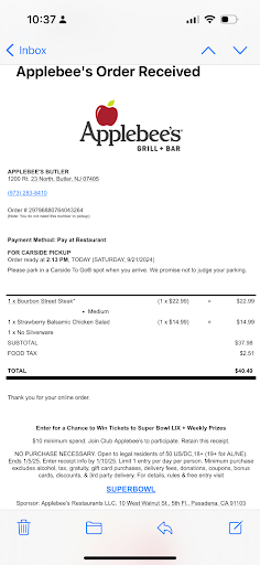 Read moreFrom the moment we walked through the doors of Applebee’s, the atmosphere was buzzing—but nothing shined brighter than Alex, our server extraordinaire. If hospitality were an Olympic sport, Alex would not only take the gold but redesign the medal to include fireworks, a confetti cannon, and a standing ovation.